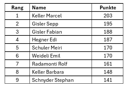 Den Titel des Kegelmeisters konnte sich in diesem Jahr Marcel Keller sichern. Nach einem spannenden Wettkampf setzte er sich gegen die starke Konkurrenz durch und verwies den Vorjahressieger, Stephan Schnyder, auf die Plätze. Besonders dramatisch wurde es in den letzten beiden Runden – dem Cup und der Minuspunkte-Runde – wo Stephan seine Führung einbüsste und so den Titel verpasste. Diese Wendung unterstreicht einmal mehr, wie eng es an der Spitze des Teilnehmerfelds zugeht und dass bis zum Schluss alles möglich ist.